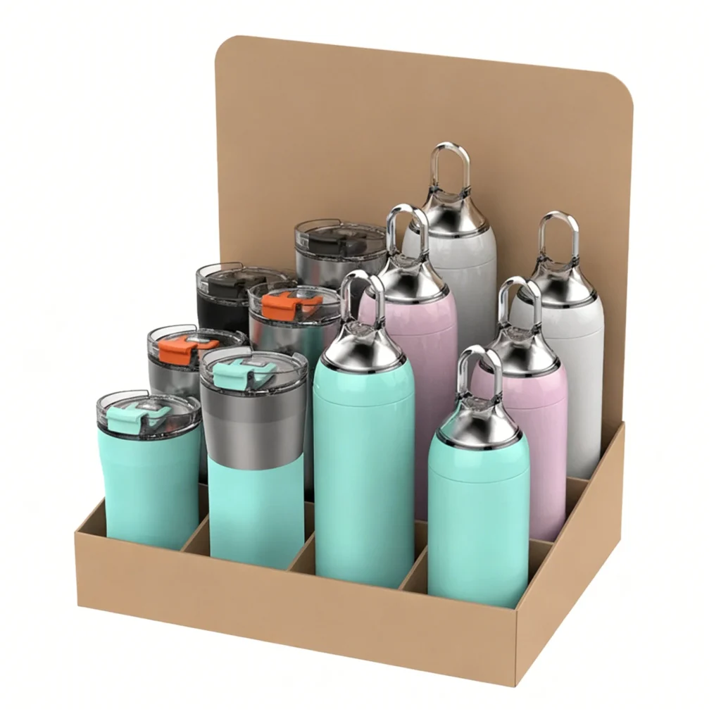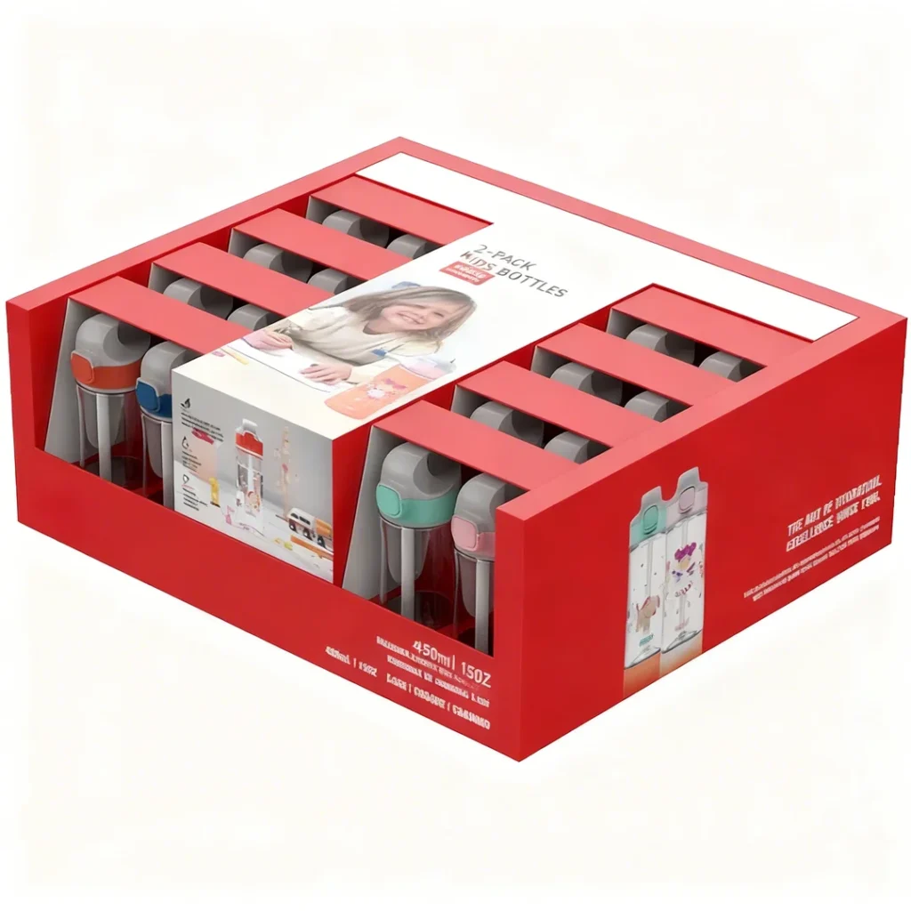 Individual packages are typically placed in carton boxes, either with a slip-up lid or in a convenient drawer-style design. For bulk wholesale water bottles, you have the flexibility to create a beautifully organized gift box that elevates the unboxing experience or opt for a standard carton display box, ideal for showcasing your bottles in retail settings. Both options ensure your products are securely packed while reflecting your brand’s style.